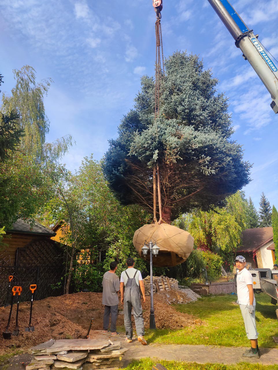 Посадка крупномеров (больших деревьев)